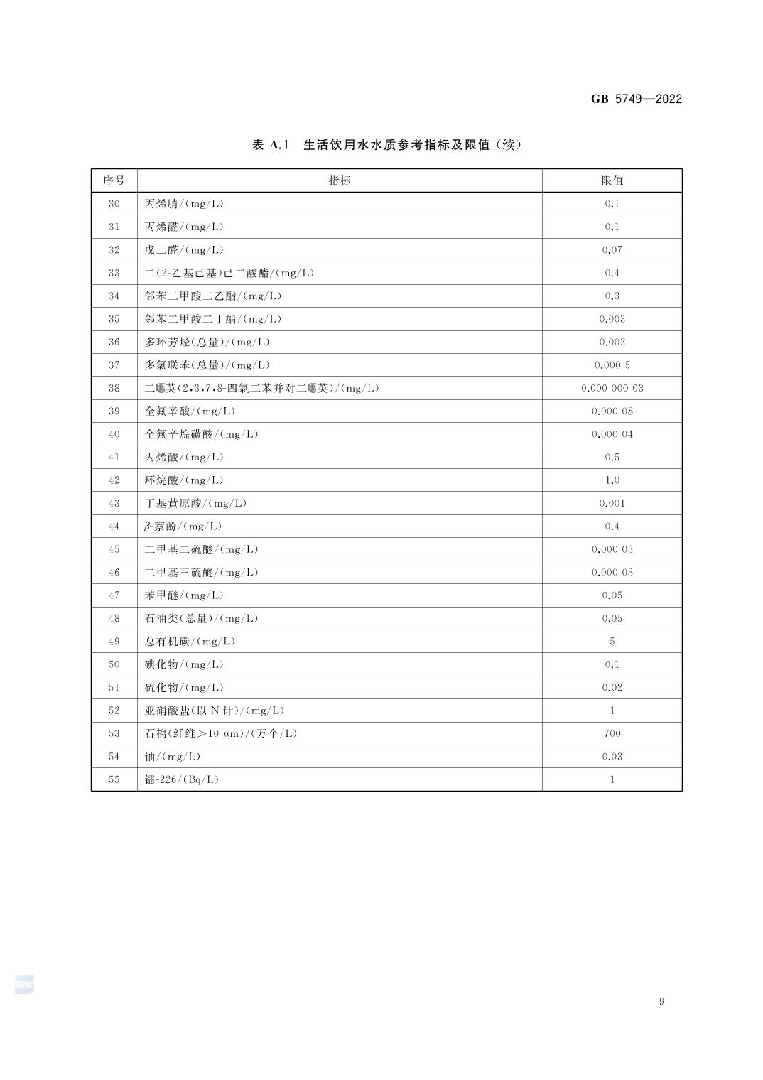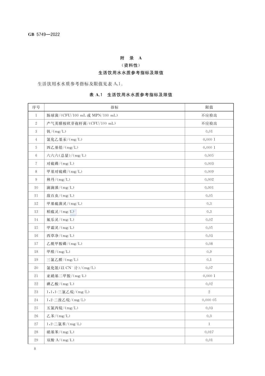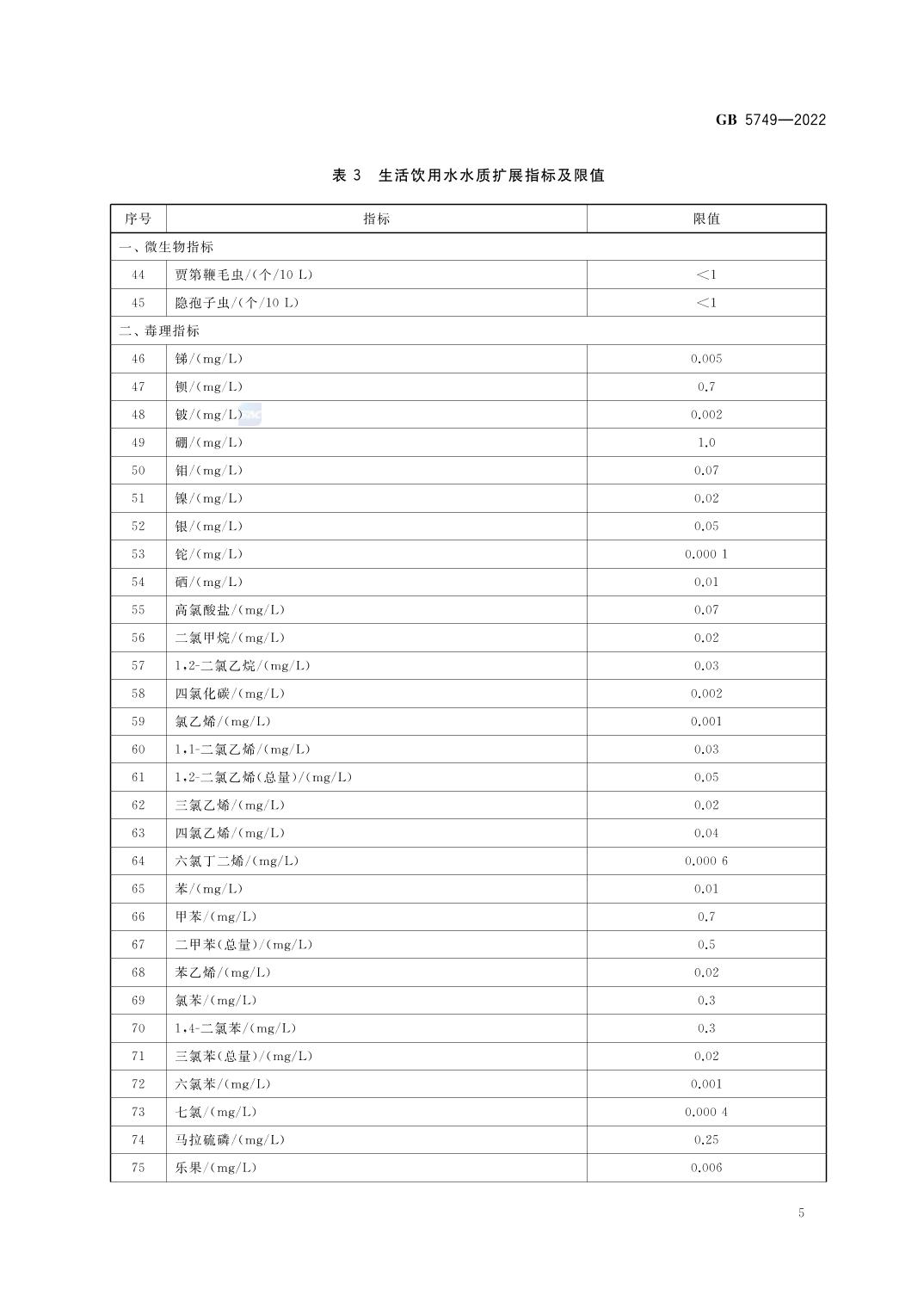 《生活饮用水卫生标准》(GB 5749-2022)