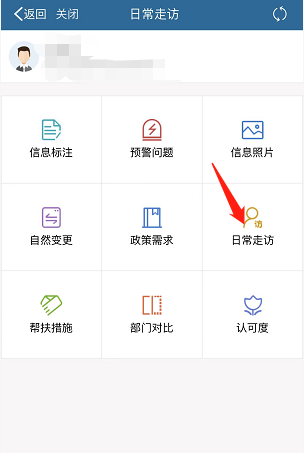 1.日常走访地址:渝防贫APP—信息核查—户列表—日常走访;如图1,图2所示;