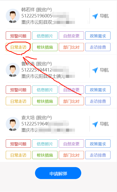 一、渝防贫APP大走访大遍访(系统内脱贫户、监测对象)