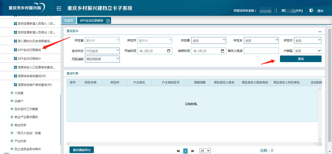 (一)查询导出大走访大遍访信息(系统内脱贫户、监测对象)