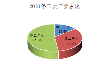 计实现地区生产总值272.8亿元,同比增长8%(图1)。其中,三次产业分别实现增加值39.4亿元、91.4亿元、142亿元,增长率分别为6.1%、9.3%、7.7%,三次产业结构优化为14.4:33.5:52.1,非农产业增加值占地区生产总值的比重达85.6%(图2)。