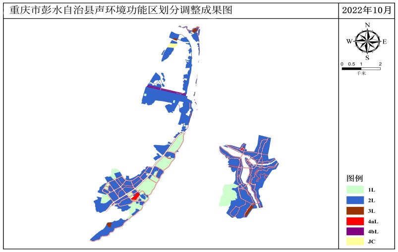 彭水自治县城市规划区、城镇规划区范围实现声环境功能区区划全覆盖,其中声环境质量受严格保护的功能区(0类和1类)确保主要功能为居民住宅、医疗卫生、文化教育、科研设计、行政办公的城市区域得到有效保护,保障人民群众享有良好的声环境。严格控制交通干线环境噪声功能区(4类)范围,防止交通噪声对周围环境产生严重影响,促进交通噪声治理。通过声环境功能区划定,初步构建起覆盖全面、结构完整、分布均衡的城市声环境质量管理空间格局,为环境噪声综合整治、城市规划管理等提供依据。