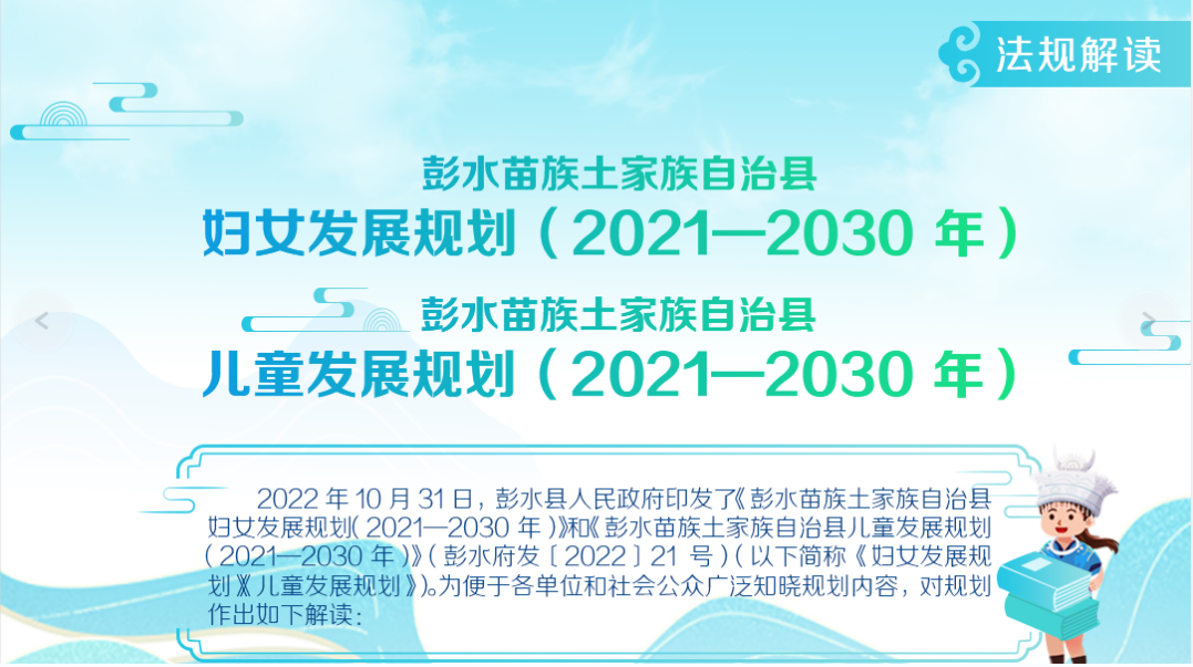《彭水苗族土家族自治县妇女发展规划(2021—2030 年)》 《彭水苗族土家族自治县儿童发展规划(2021—2030 年)》 解读